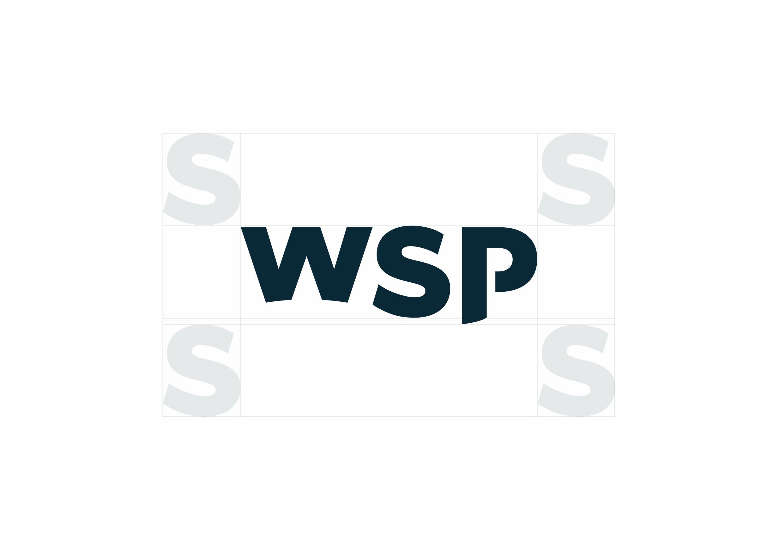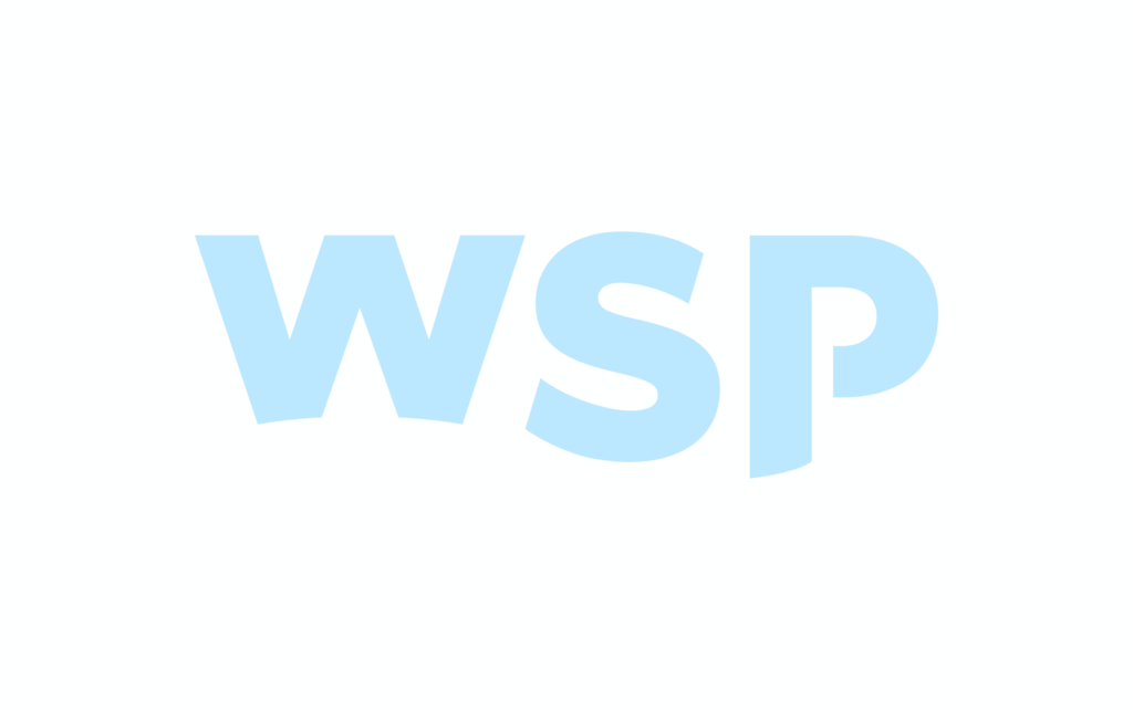 Het WSP-logo is een woordmerk met beeldmerk dat al jarenlang het merk vertegenwoordigt. Het sluit nog steeds aan bij de huidige positionering van WSP, het is duidelijk, krachtig, technisch en zonder visuele ruis of poespas. Het logo blijft daarom ongewijzigd in vorm, maar wordt gebruikt in de nieuwe merkkleuren om consistentie te creƫren.